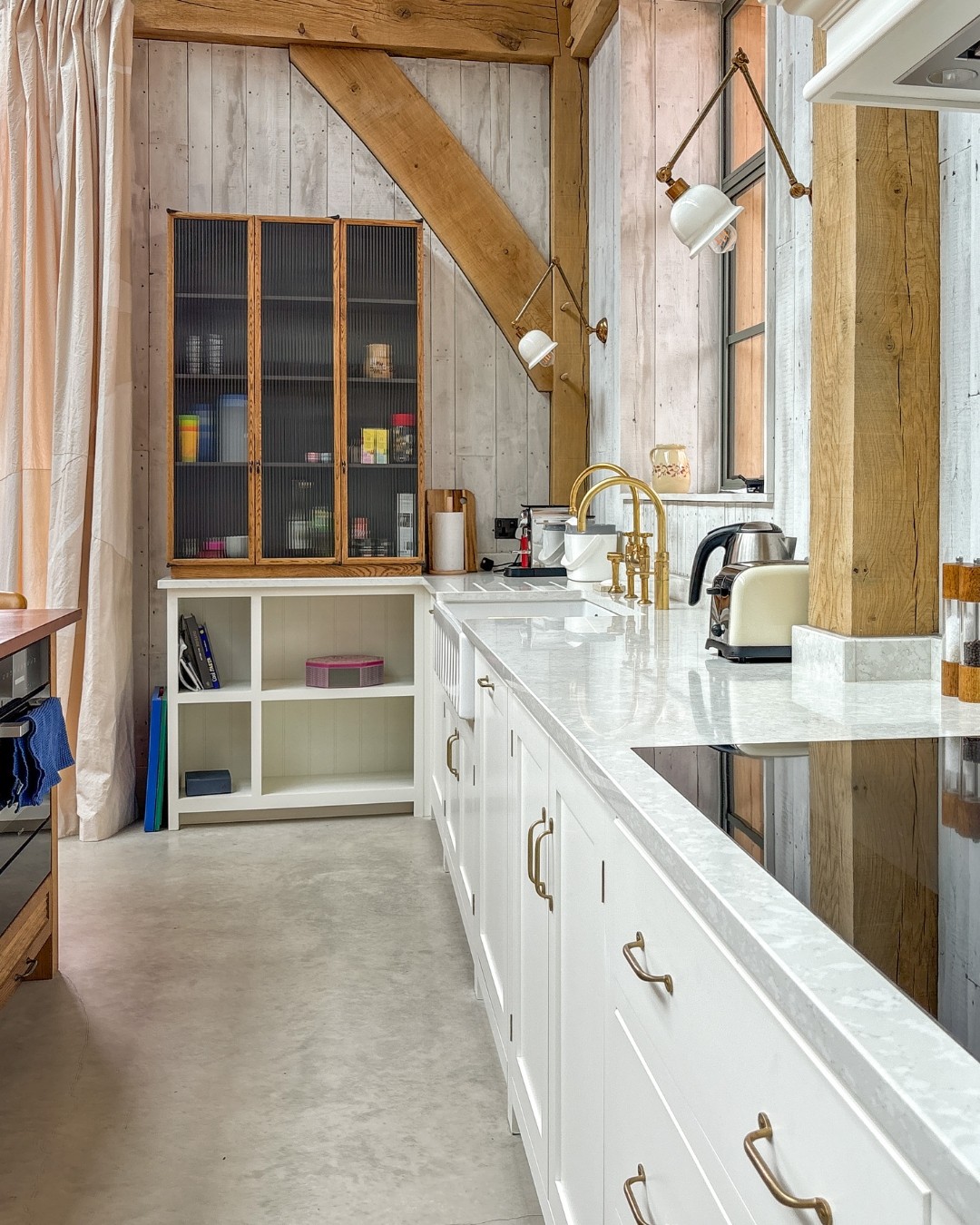 A beautiful pool house situated in Billingshurst, West Sussex. With whitewashed reclaimed timber throughout, marble-effect walls in the changing rooms.